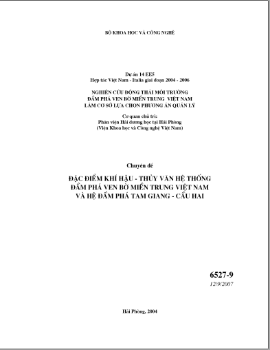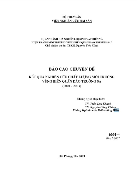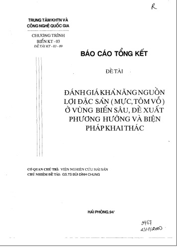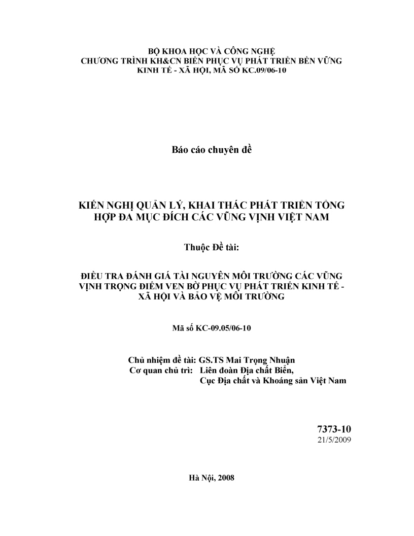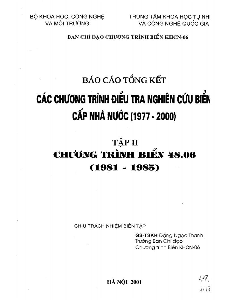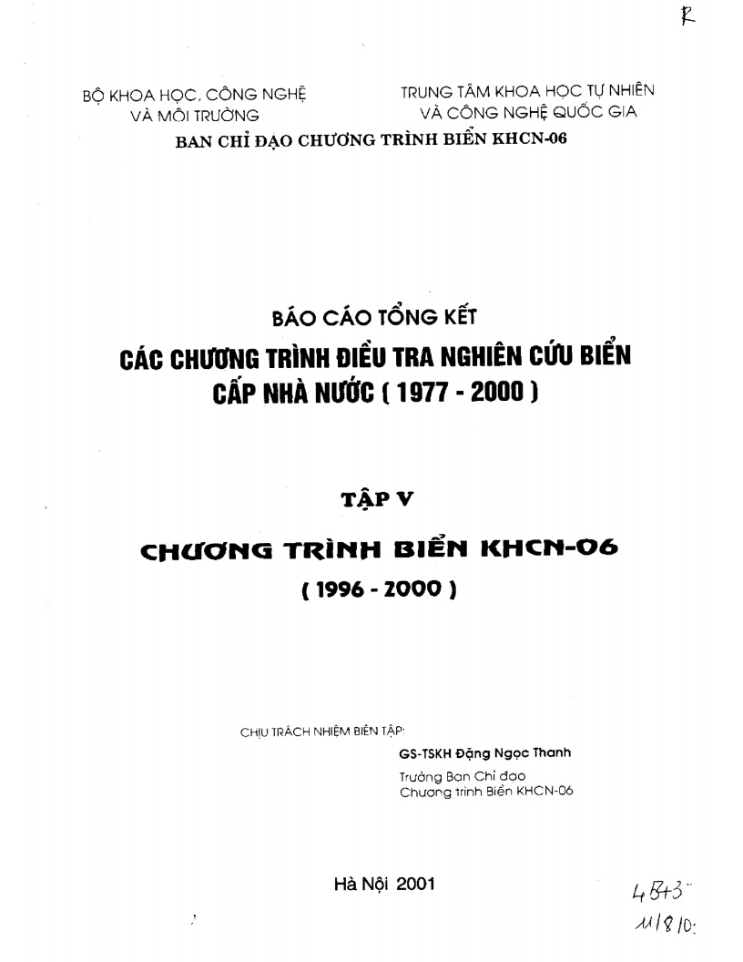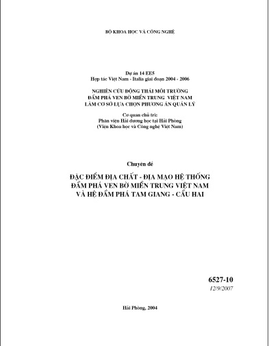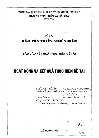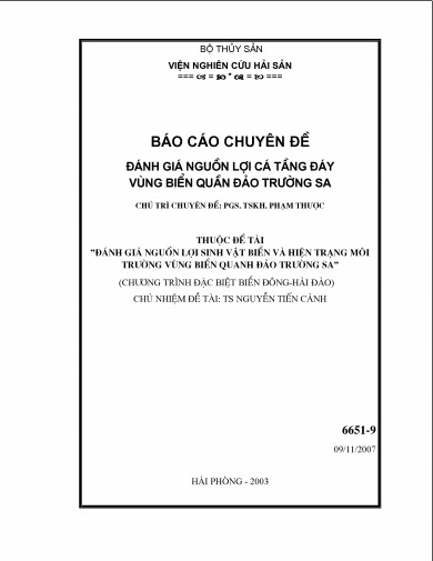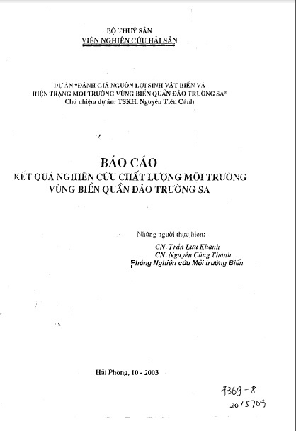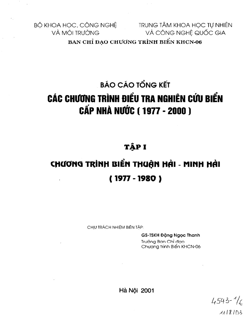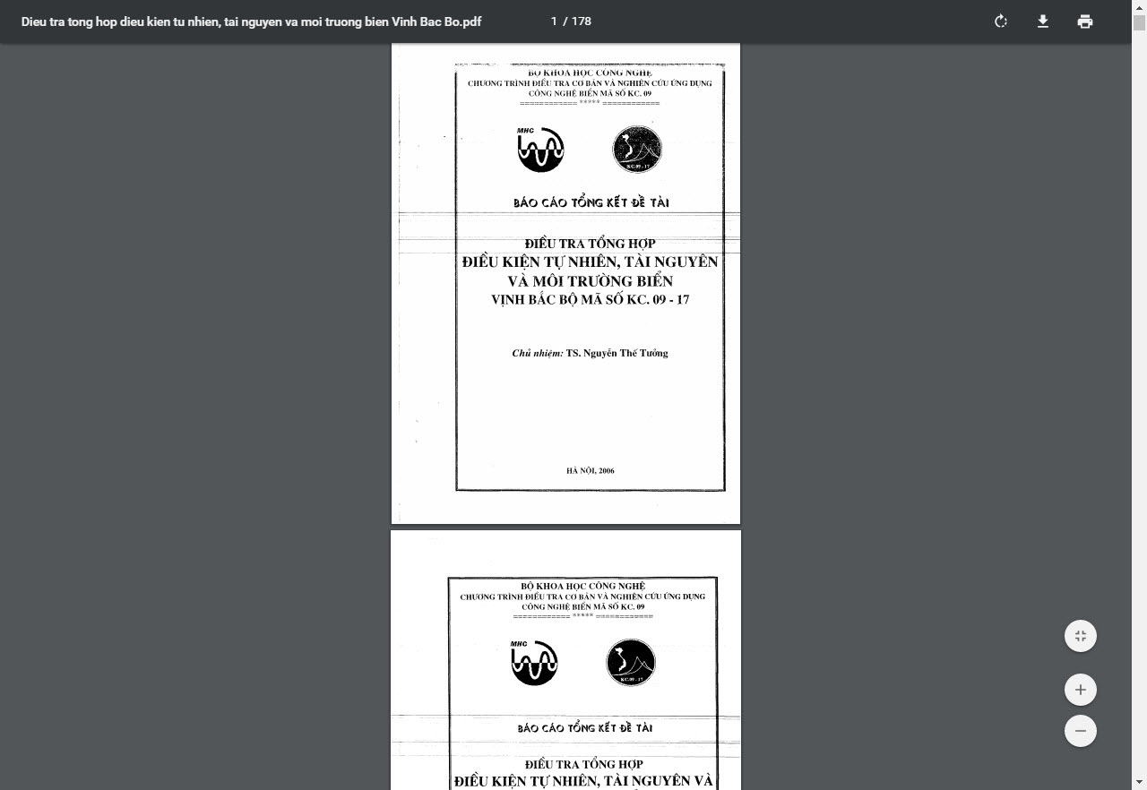 Tài liệu số là nội dung toàn văn của các báo cáo tổng kết, báo cáo chuyên đề thuộc các đề tài, dự án nghiên cứu biển trên các vùng biển và hải đảo Việt Nam từ trước đến nay. Người xem có thể đọc trực tiếp hoặc tải về toàn bộ nội dung của tài liệu.