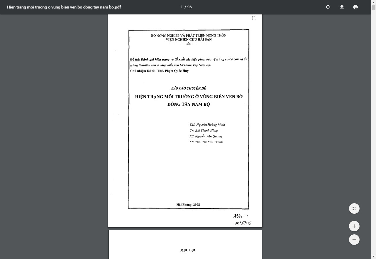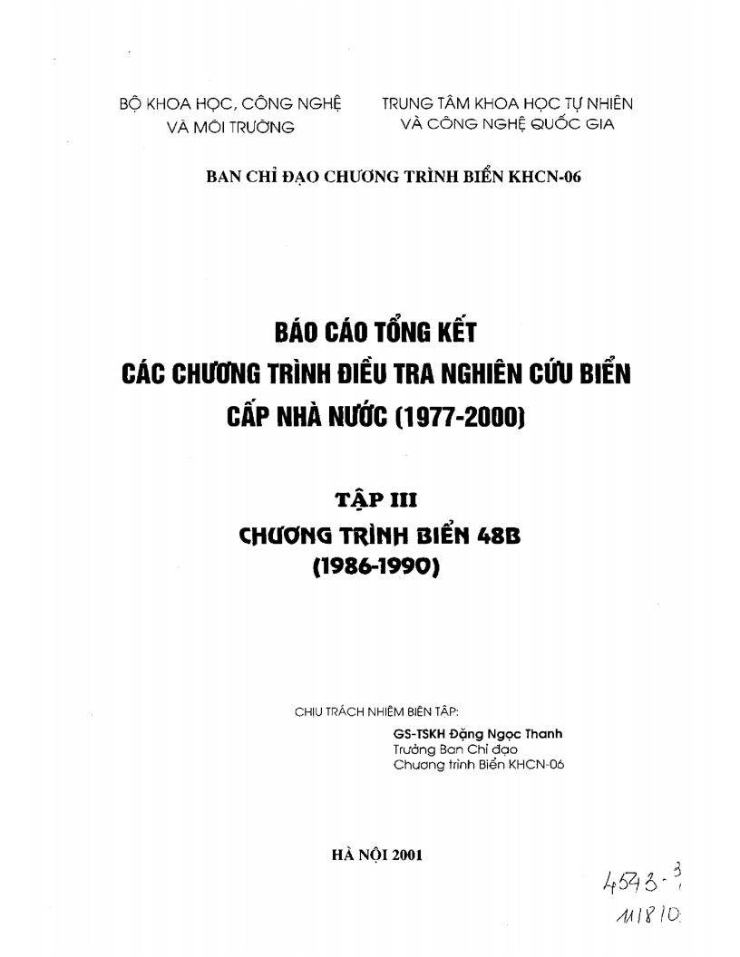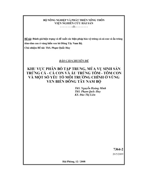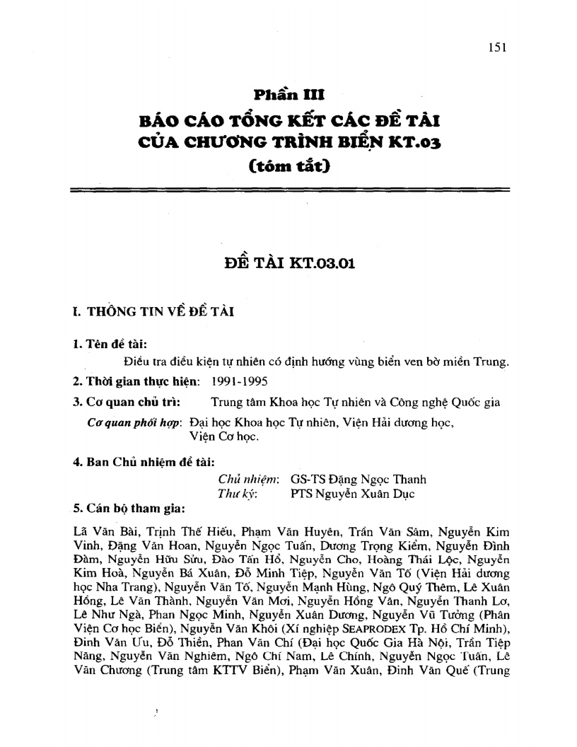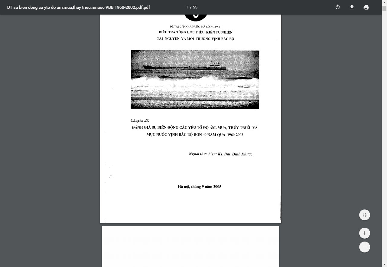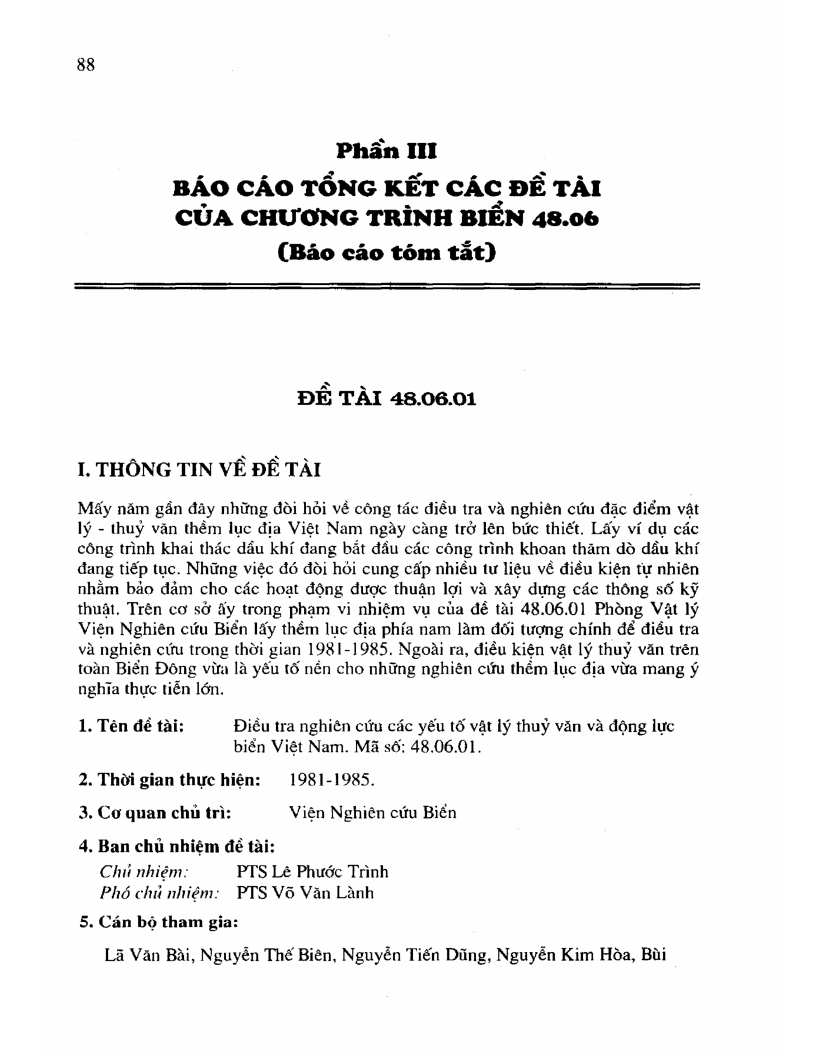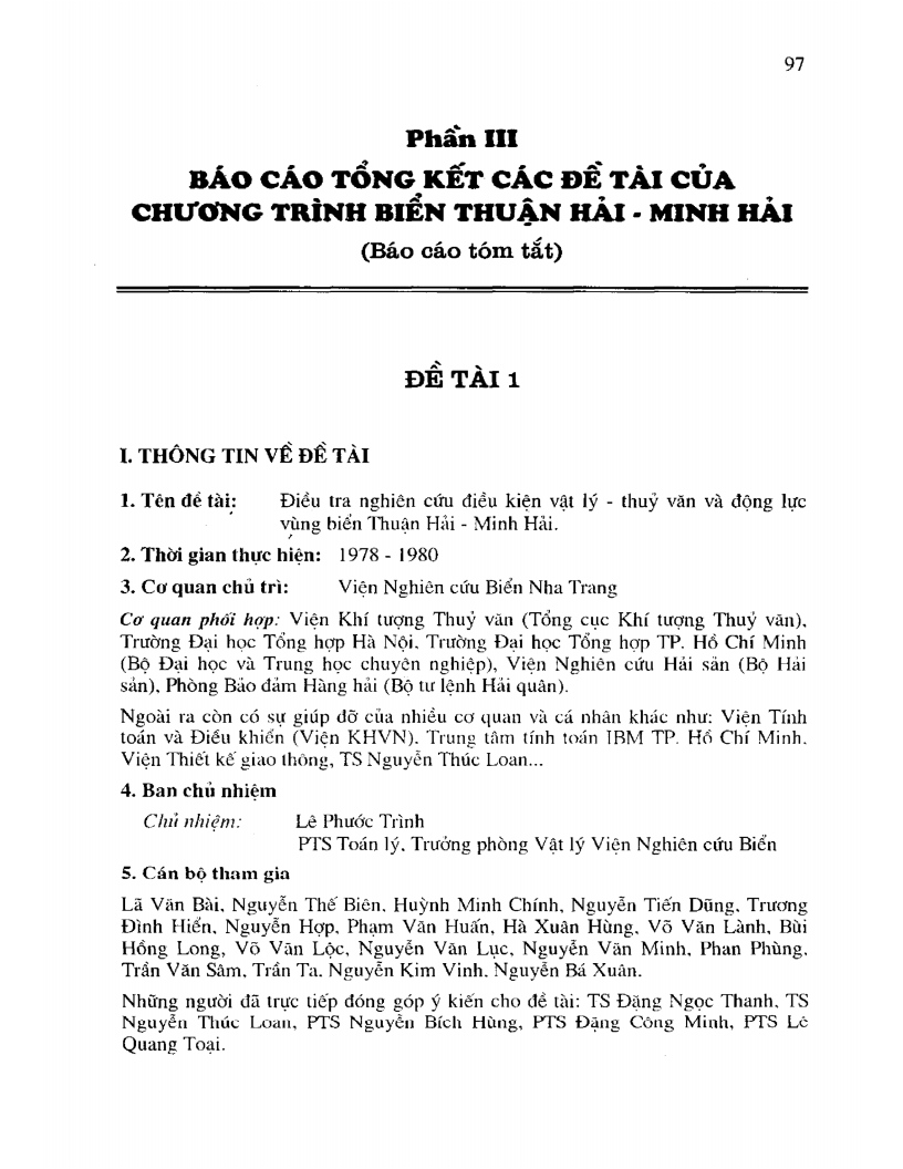 Tài liệu số là nội dung toàn văn của các báo cáo tổng kết, báo cáo chuyên đề thuộc các đề tài, dự án nghiên cứu biển trên các vùng biển và hải đảo Việt Nam từ trước đến nay. Người xem có thể đọc trực tiếp hoặc tải về toàn bộ nội dung của tài liệu.
