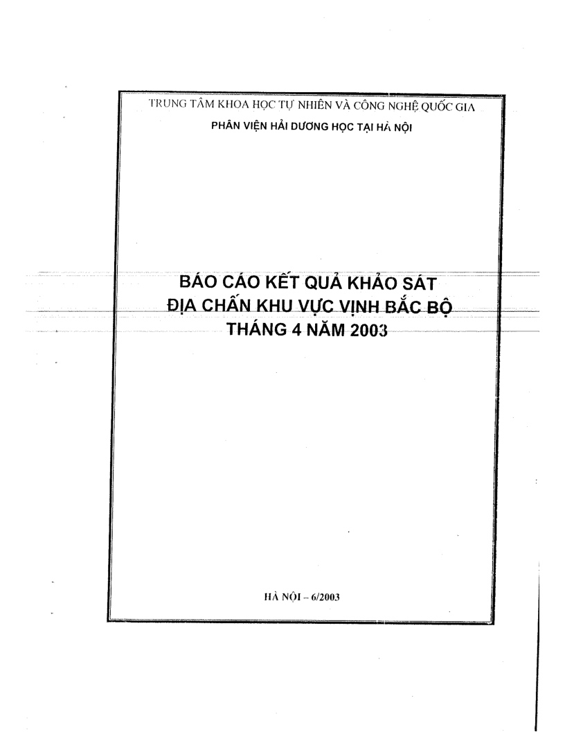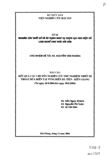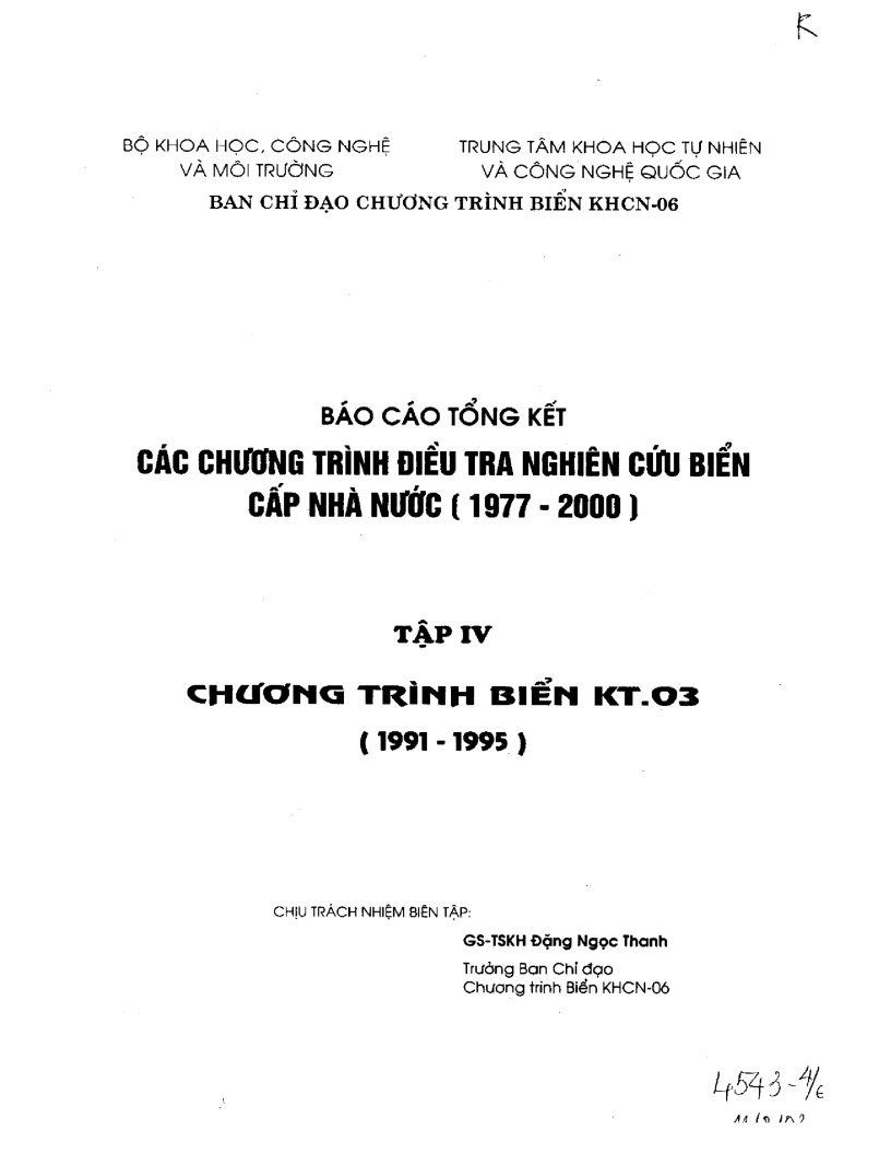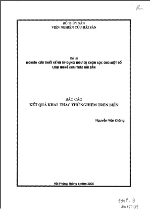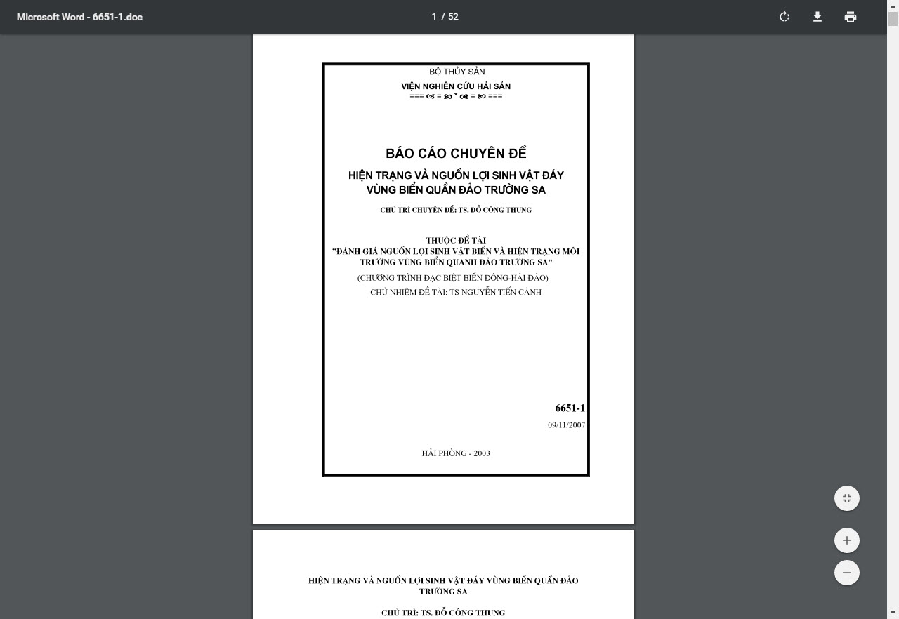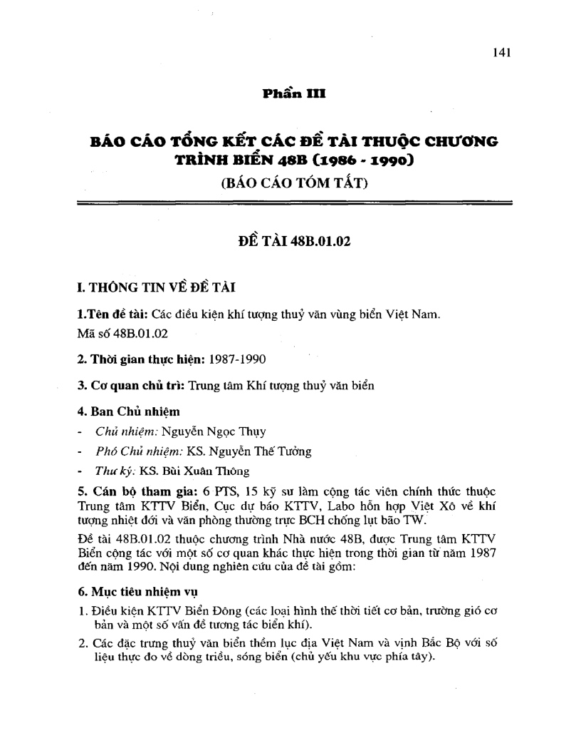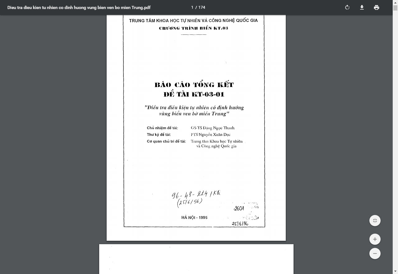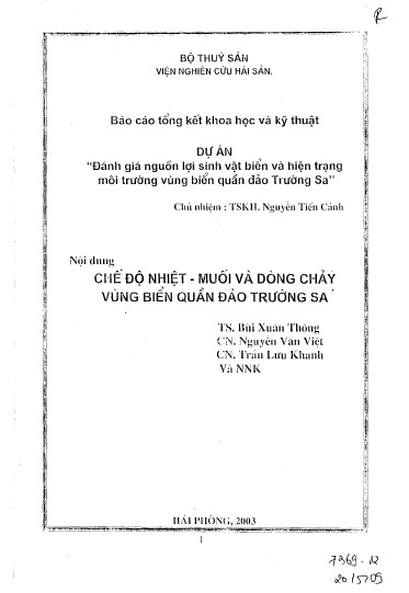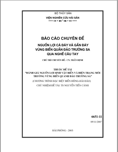 Tài liệu số là nội dung toàn văn của các báo cáo tổng kết, báo cáo chuyên đề thuộc các đề tài, dự án nghiên cứu biển trên các vùng biển và hải đảo Việt Nam từ trước đến nay. Người xem có thể đọc trực tiếp hoặc tải về toàn bộ nội dung của tài liệu.