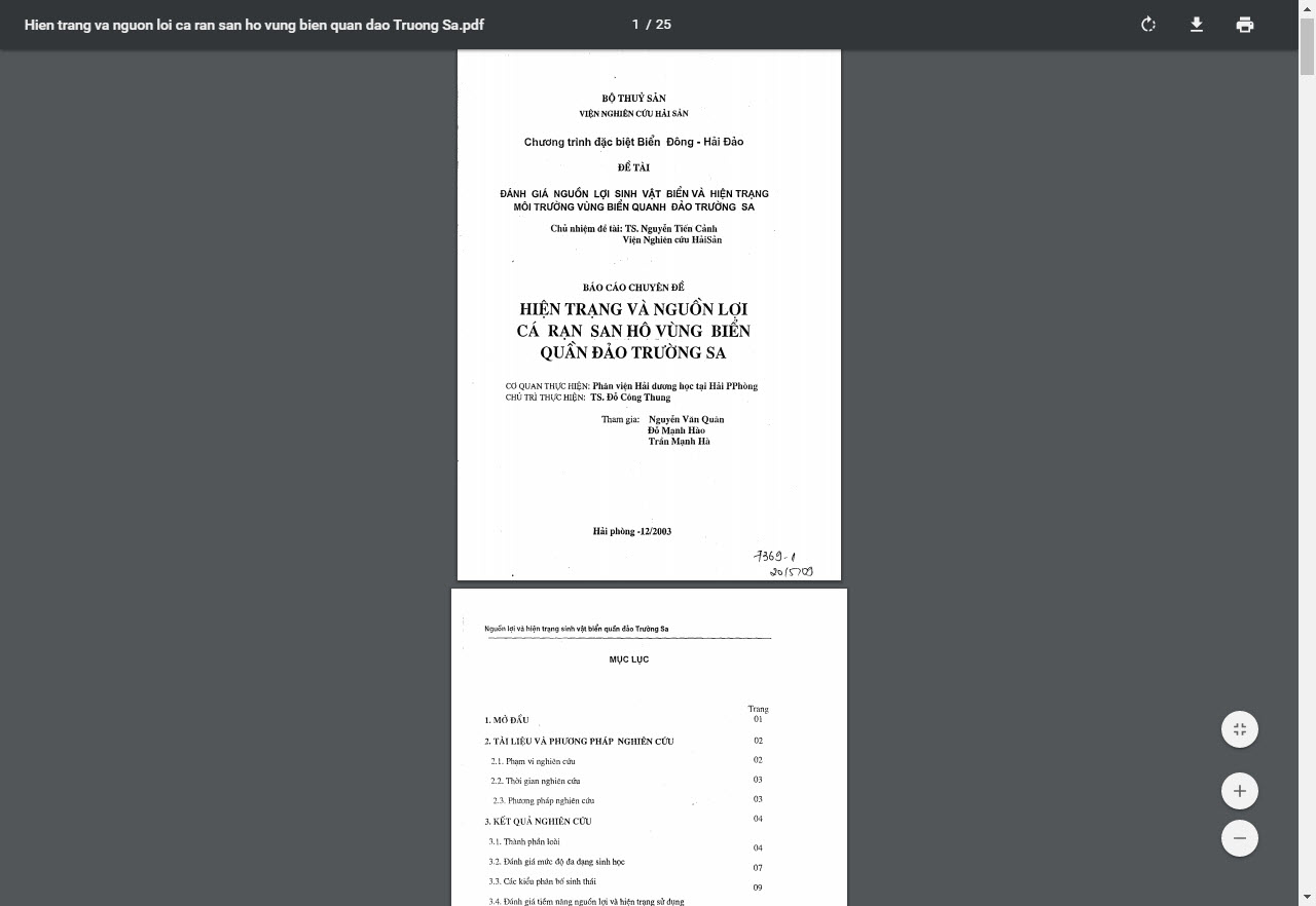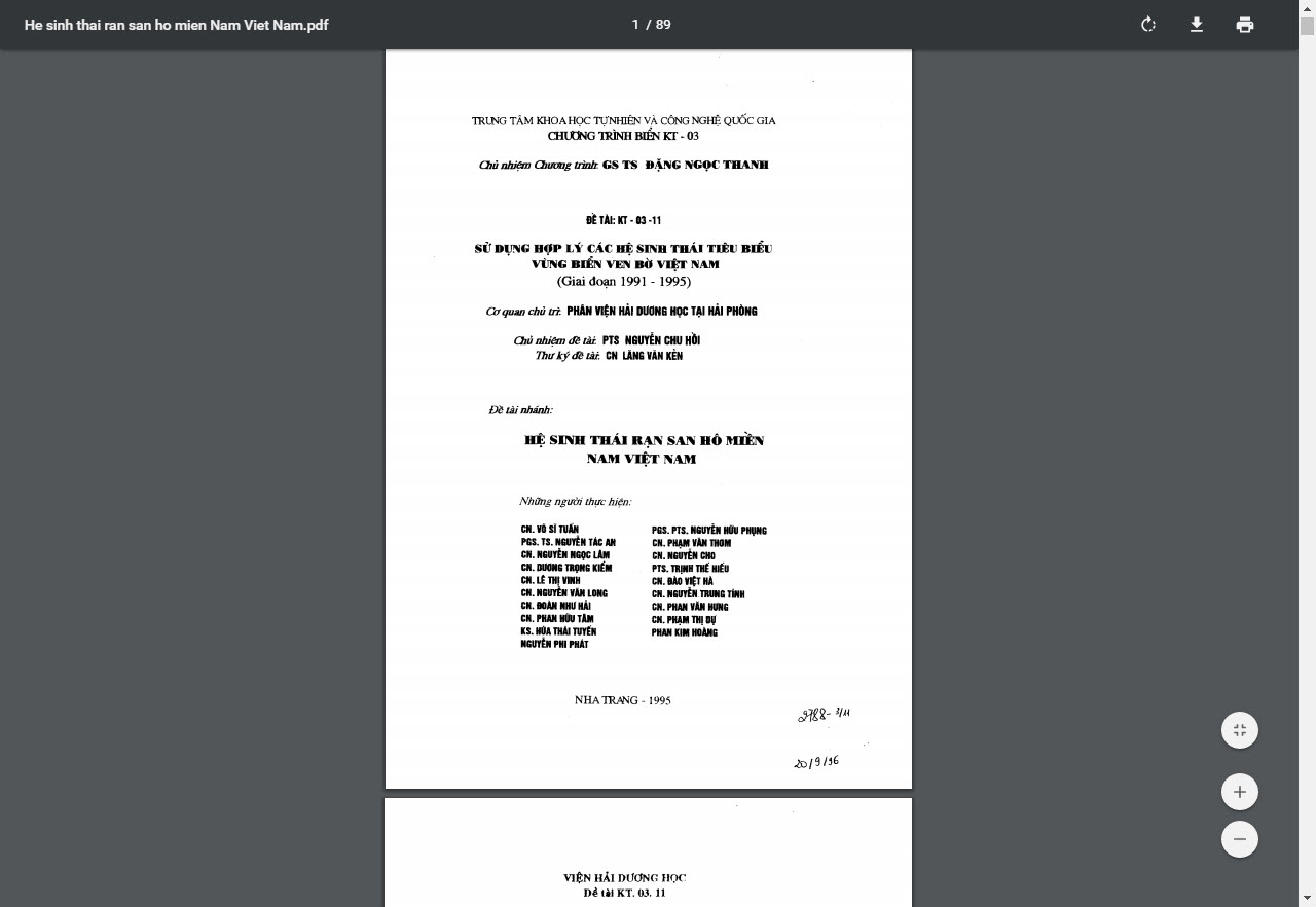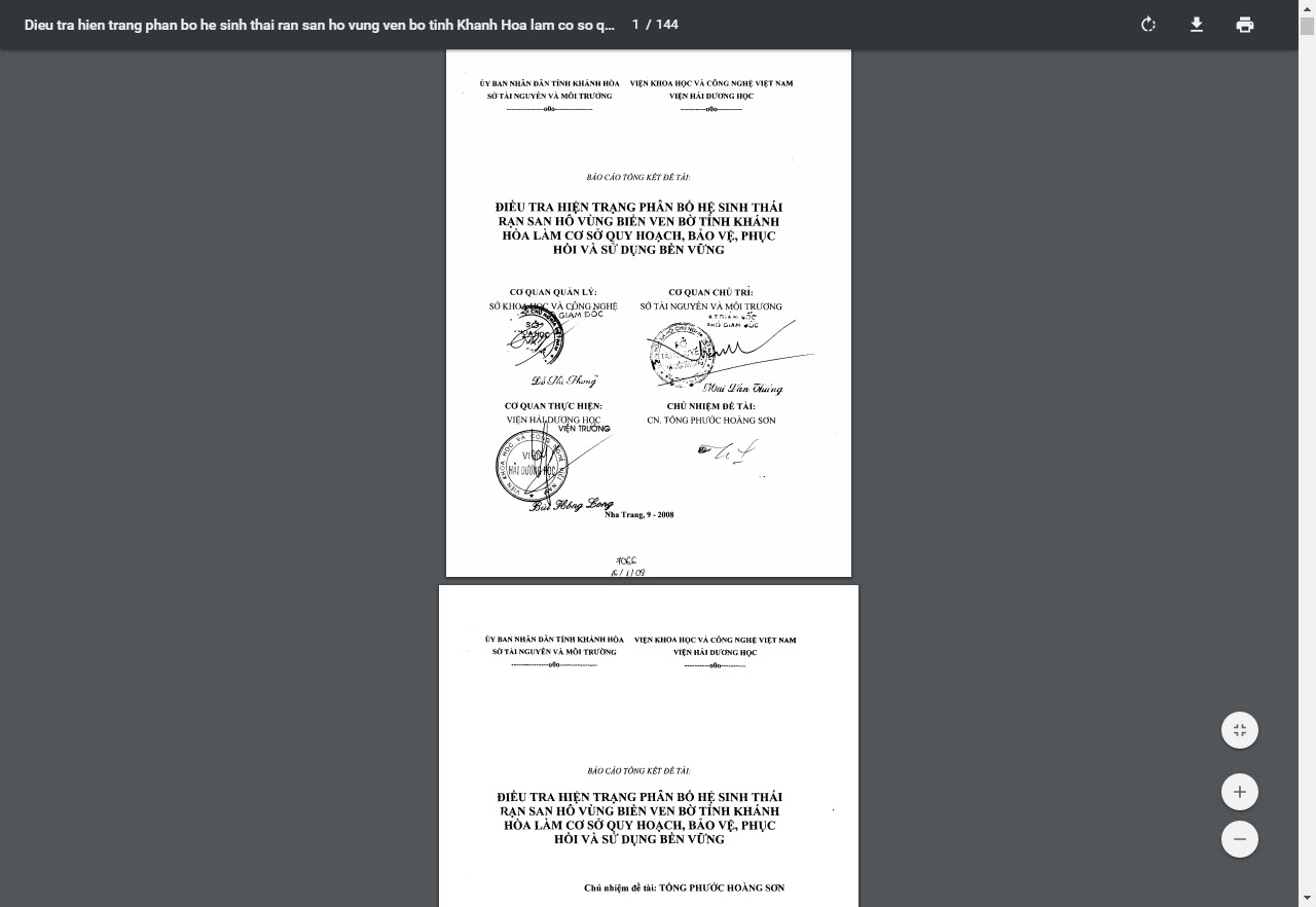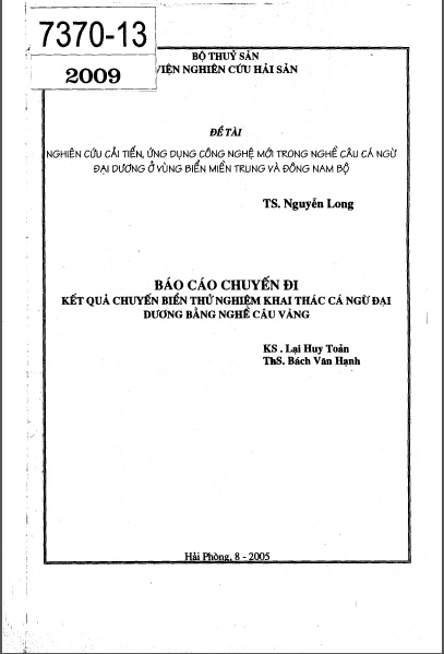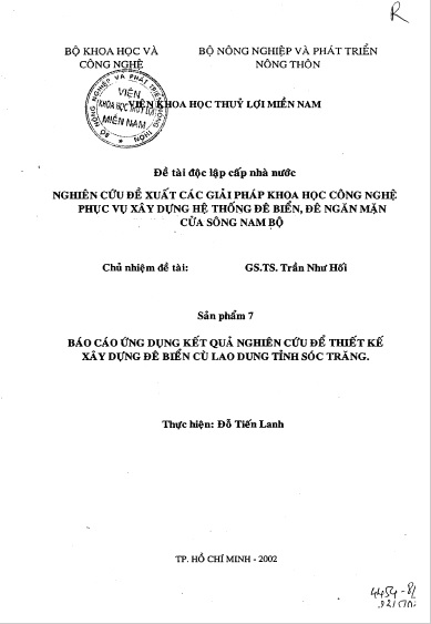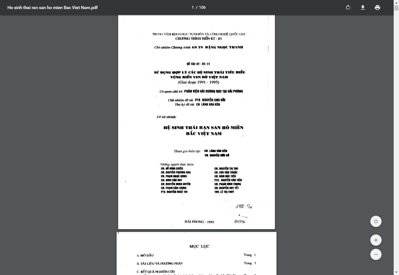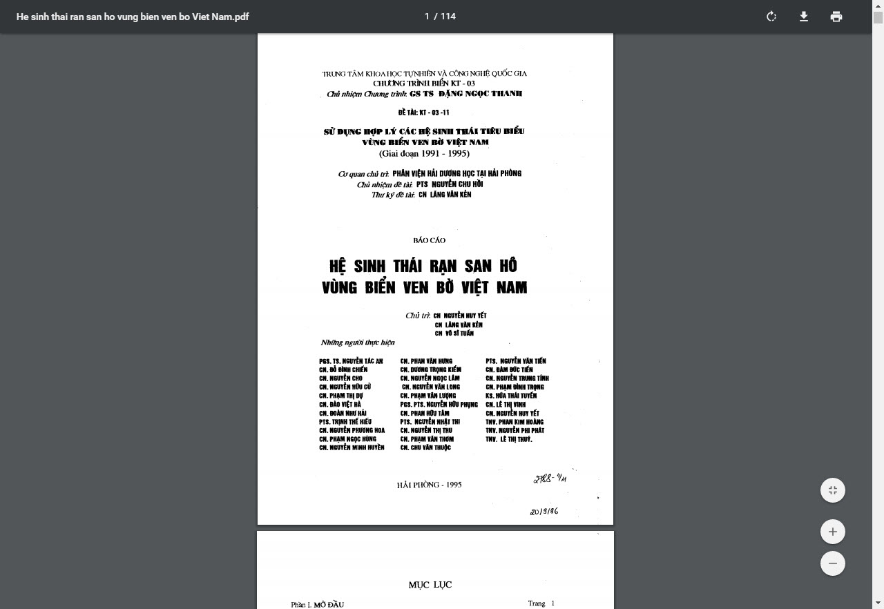 Tài liệu số là nội dung toàn văn của các báo cáo tổng kết, báo cáo chuyên đề thuộc các đề tài, dự án nghiên cứu biển trên các vùng biển và hải đảo Việt Nam từ trước đến nay. Người xem có thể đọc trực tiếp hoặc tải về toàn bộ nội dung của tài liệu.