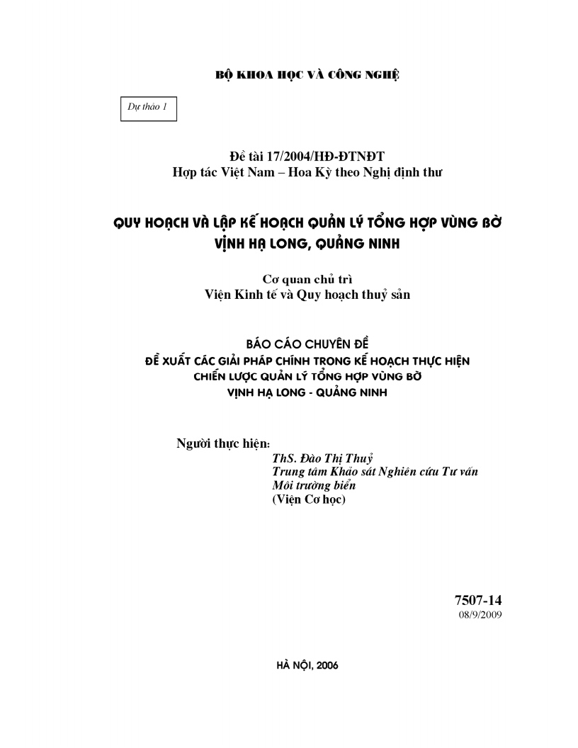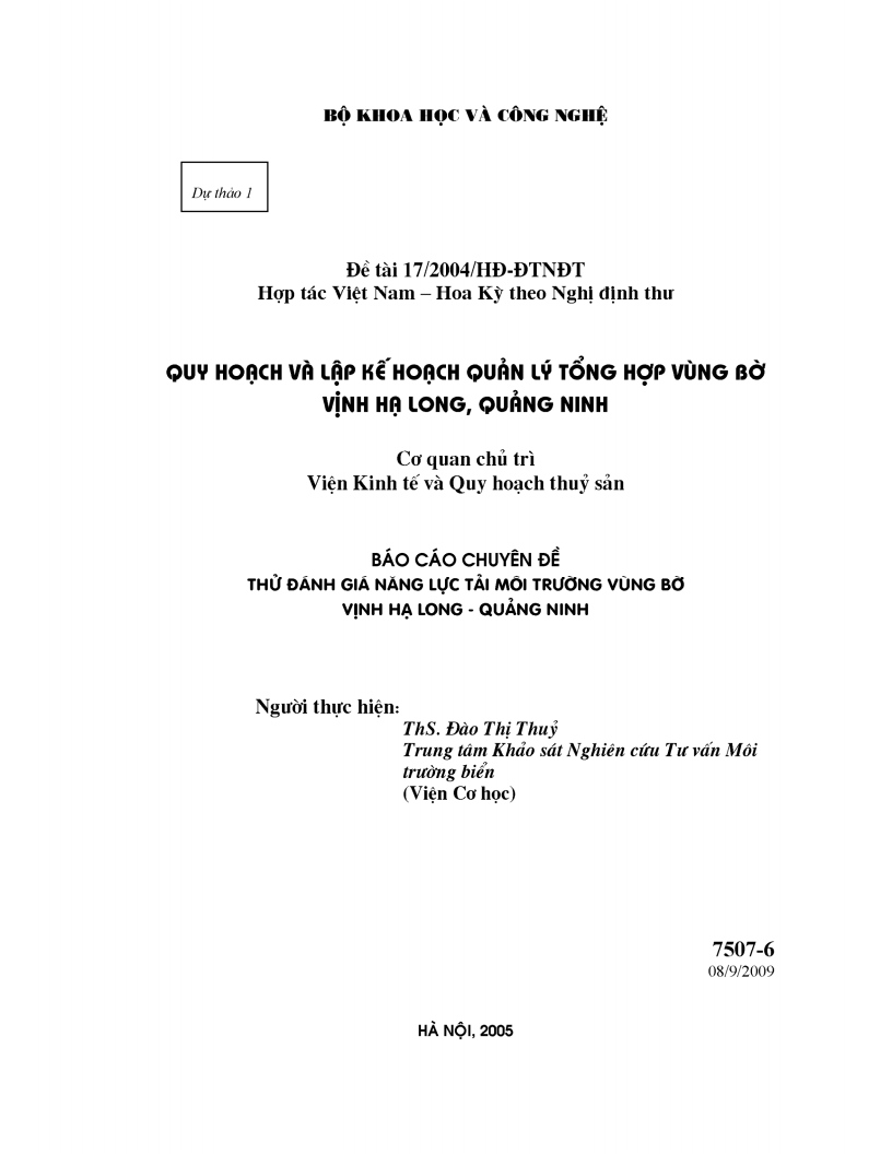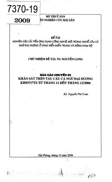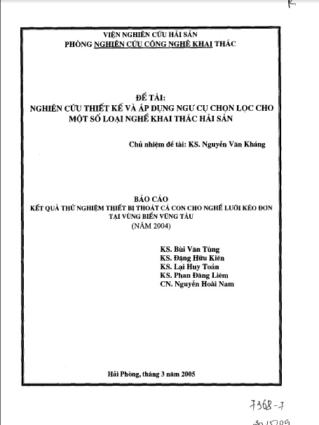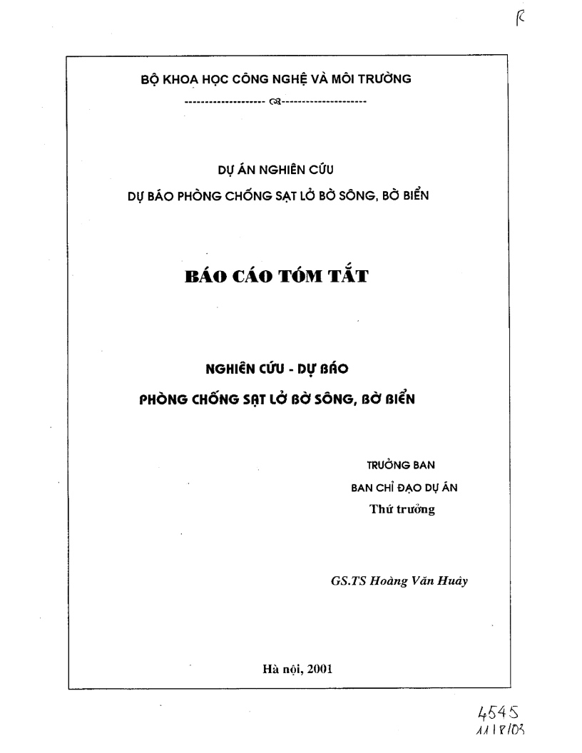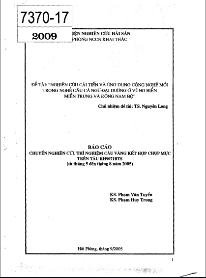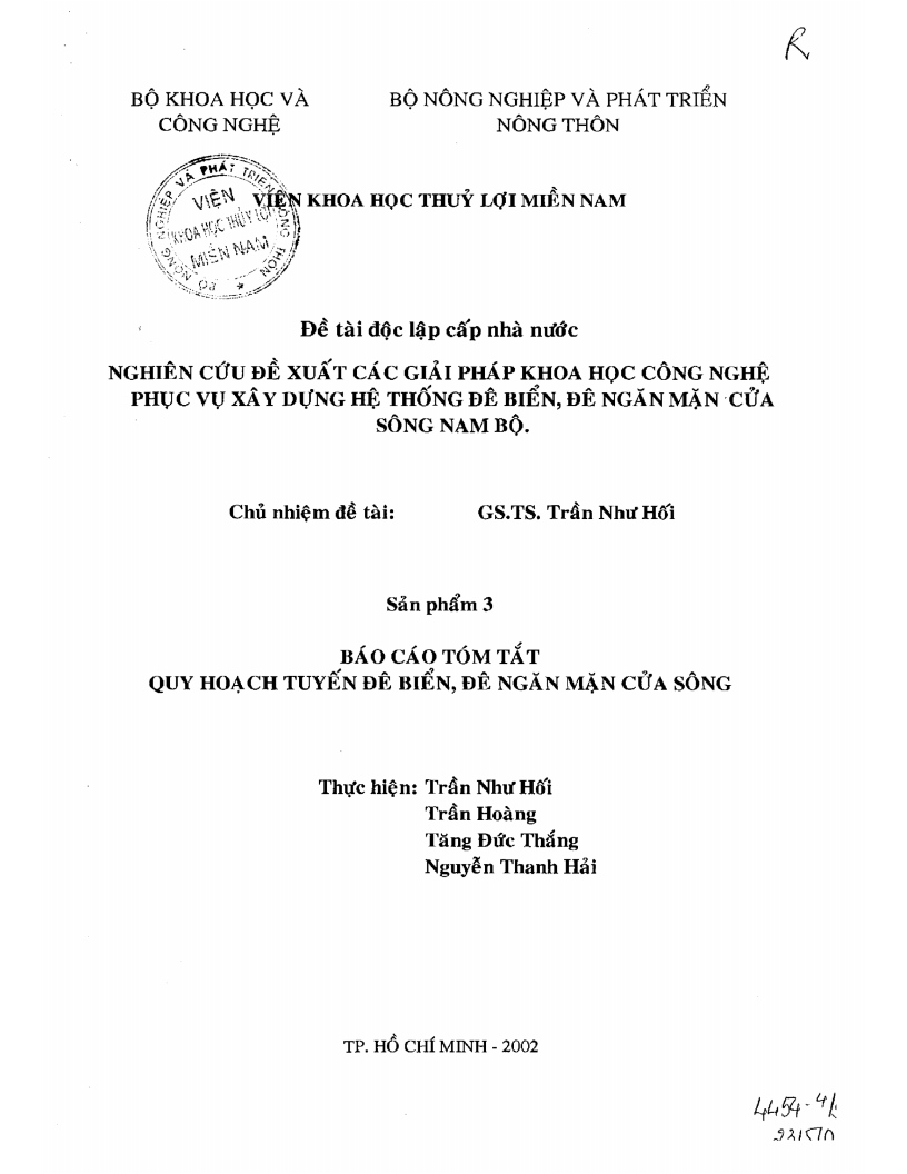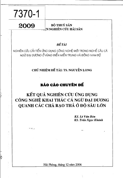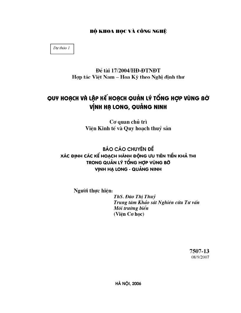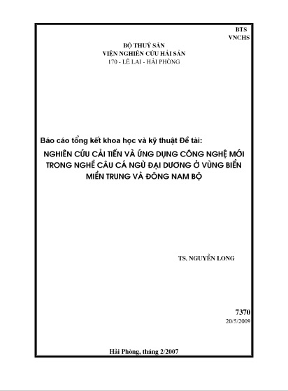 Tài liệu số là nội dung toàn văn của các báo cáo tổng kết, báo cáo chuyên đề thuộc các đề tài, dự án nghiên cứu biển trên các vùng biển và hải đảo Việt Nam từ trước đến nay. Người xem có thể đọc trực tiếp hoặc tải về toàn bộ nội dung của tài liệu.