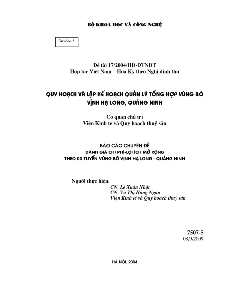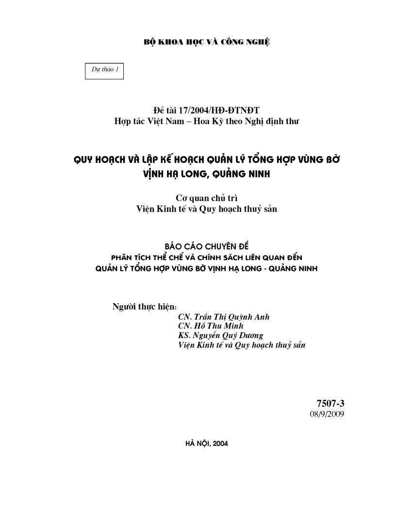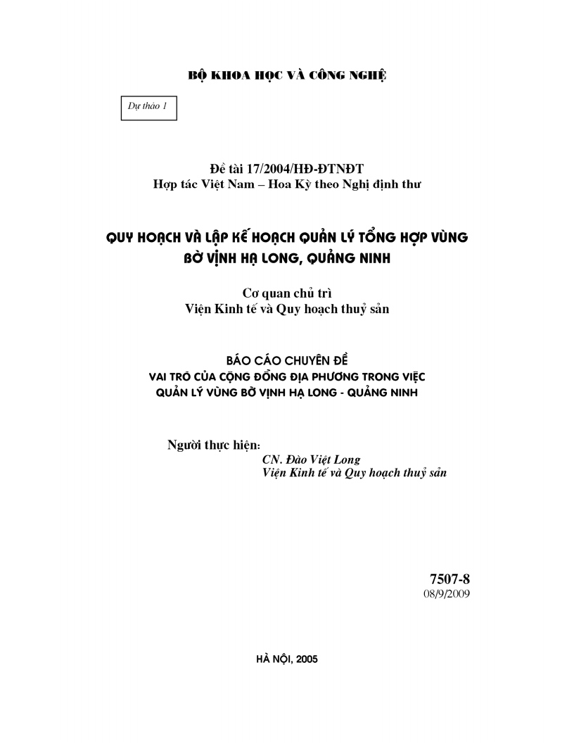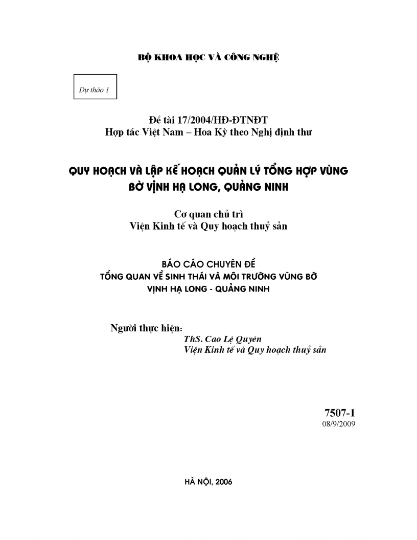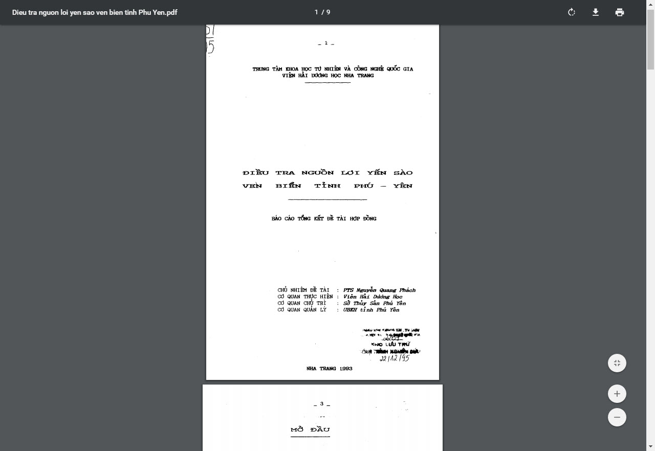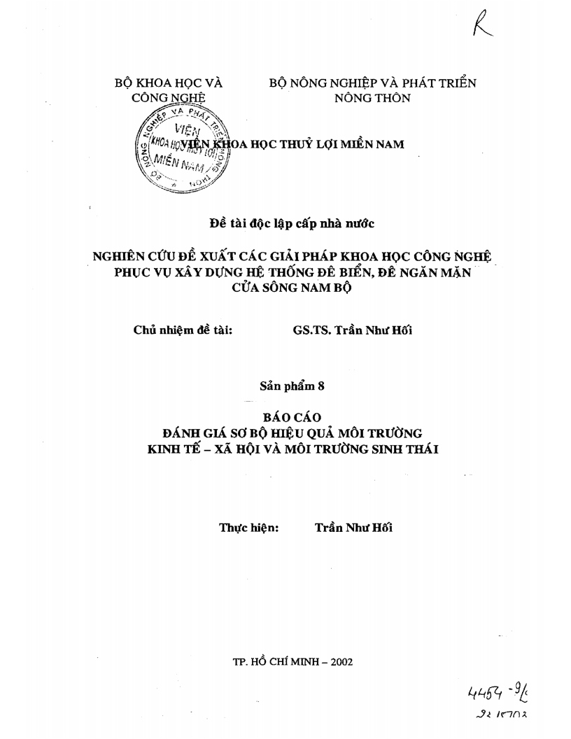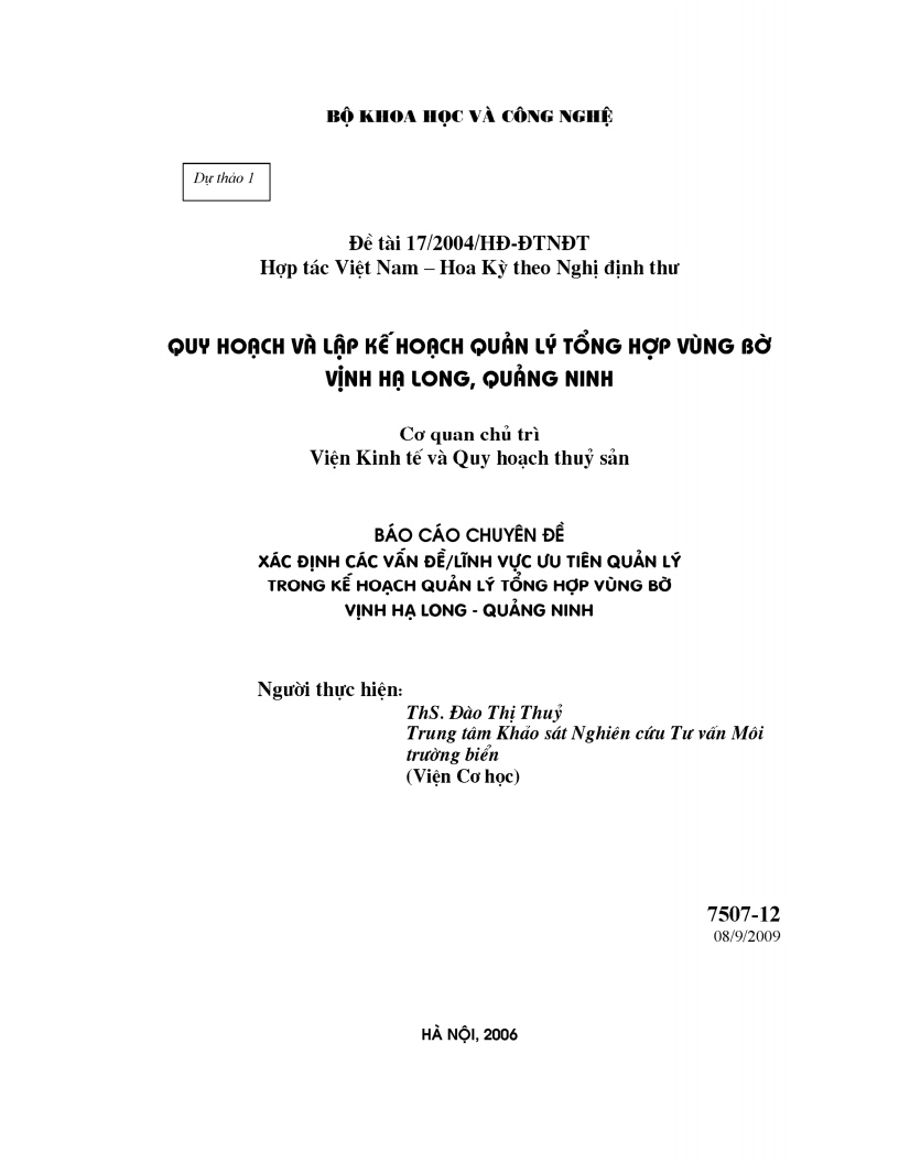Tài liệu số là nội dung toàn văn của các báo cáo tổng kết, báo cáo chuyên đề thuộc các đề tài, dự án nghiên cứu biển trên các vùng biển và hải đảo Việt Nam từ trước đến nay. Người xem có thể đọc trực tiếp hoặc tải về toàn bộ nội dung của tài liệu.